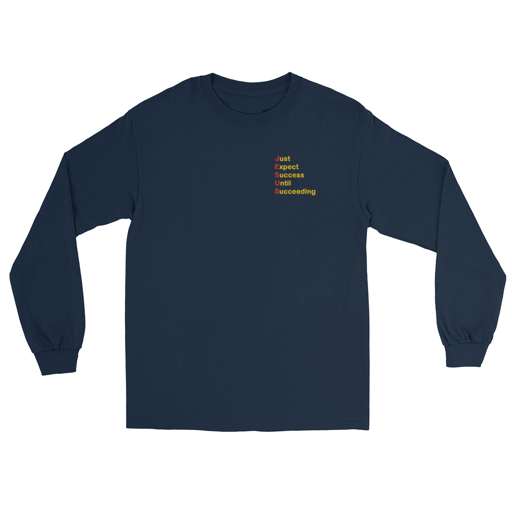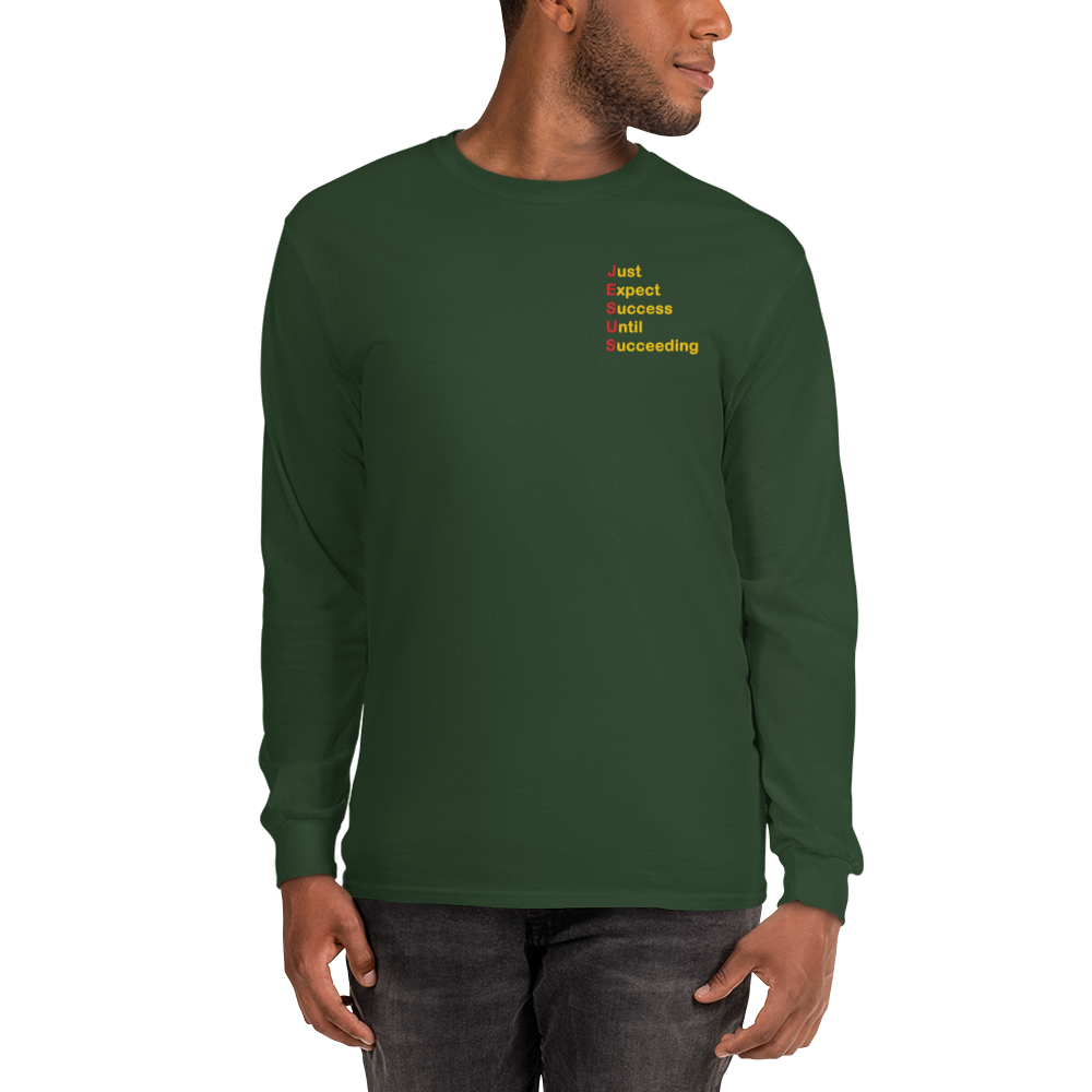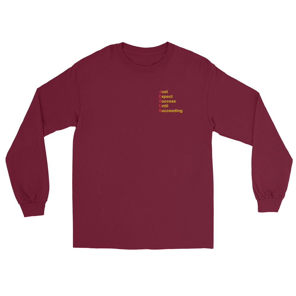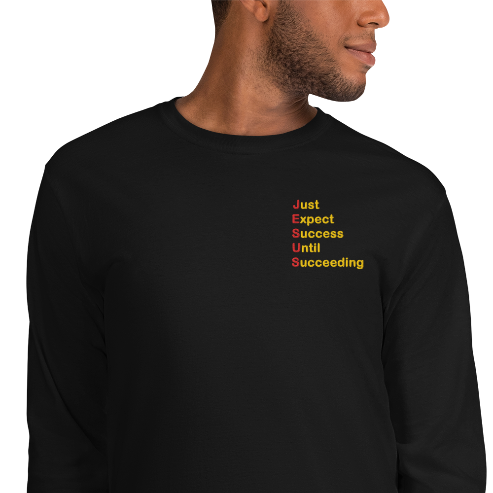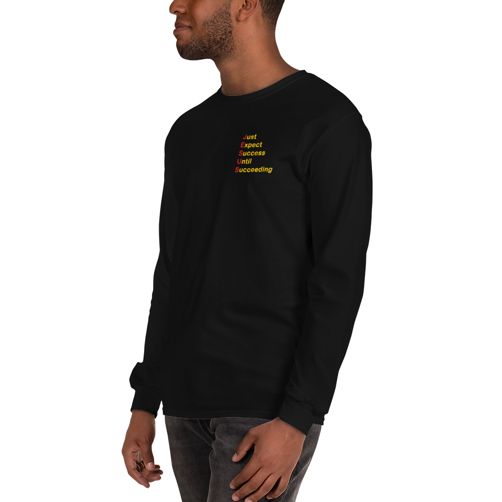 Elevate your wardrobe with a timeless long-sleeved essential that carries more than style—it carries purpose. Featuring red and gold embroidery of “Just Expect Success Until Succeeding,” this shirt blends comfort, durability, and motivation into one piece. Perfect for casual days or relaxed business settings, it’s designed to inspire while keeping you sharp.